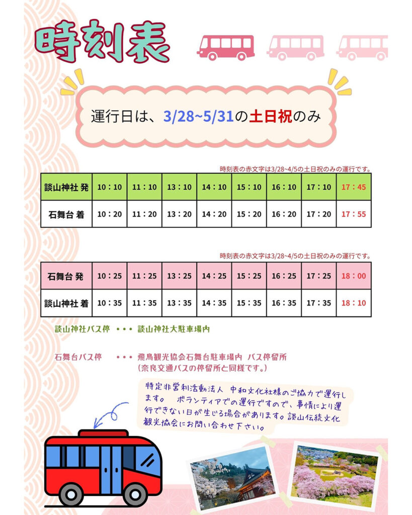 石舞台 ⇔ 談山神社の【無料周遊バス】がスタートしました🌸3/28〜5/31の土日祝限定!