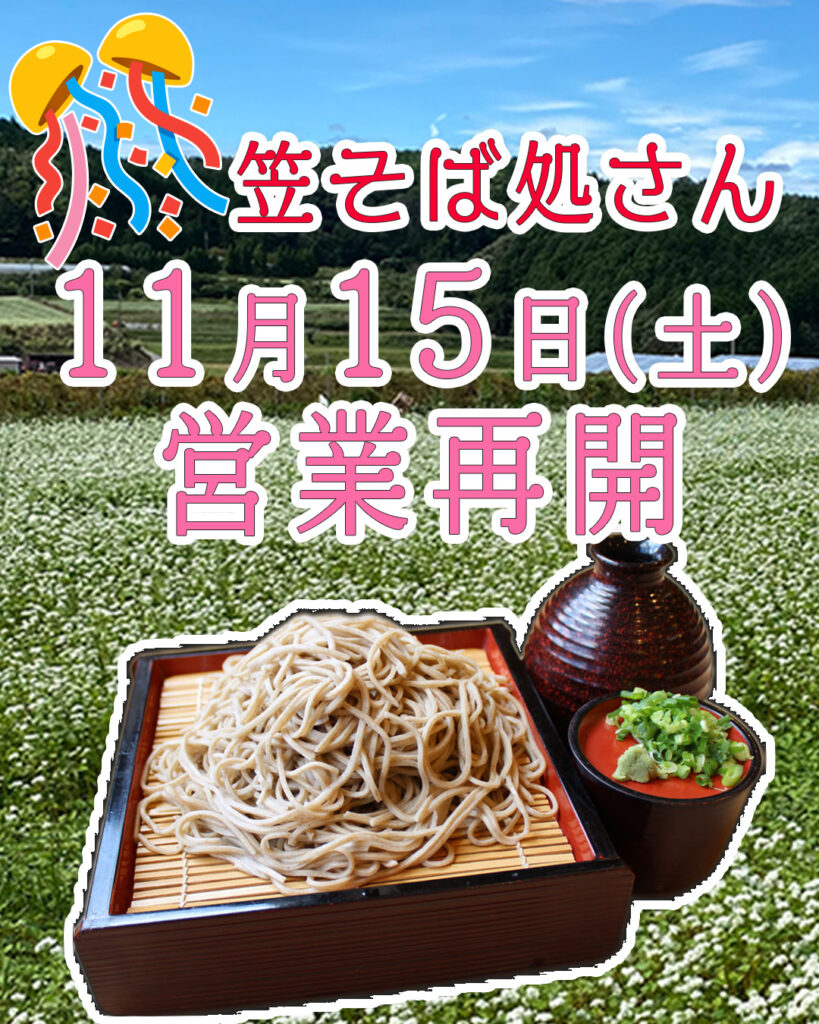 ずっと楽しみにしていた笠そば処さんが、11月15日から営業を再開されます!🎉