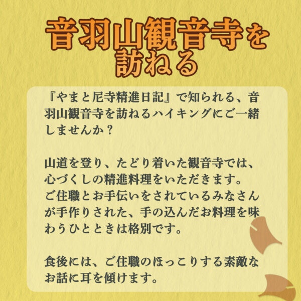 『やまと尼寺精進日記』で知られる、音羽山観音寺を訪ねるハイキングにご一緒しませんか?